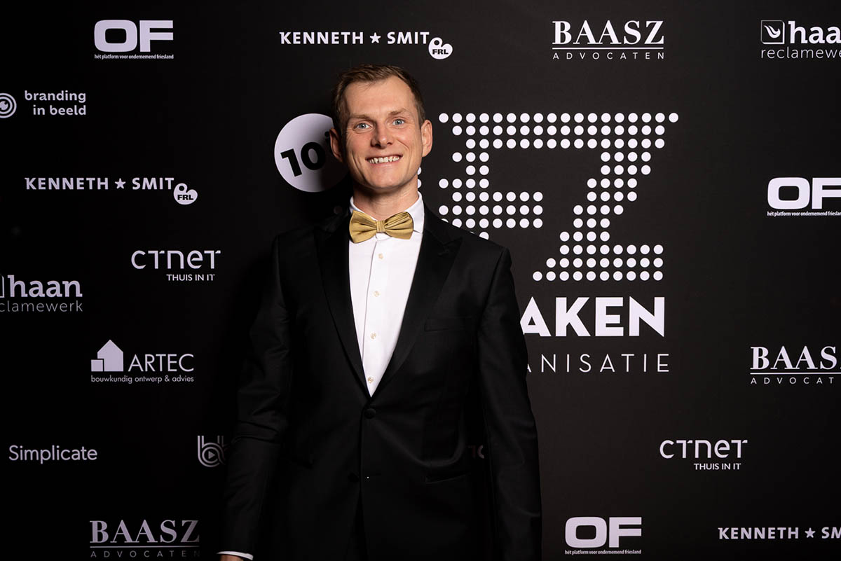 We begonnen bij de beleving. Samen met Friese Zaken ontwikkelden we een visueel concept dat de avond extra lading gaf. Een stijlvolle fotowand bij binnenkomst, waar leden letterlijk en figuurlijk in de spotlights stapten. Niet zomaar een backdrop, maar een statement. Hier hoor je bij. Hier mag je gezien worden.